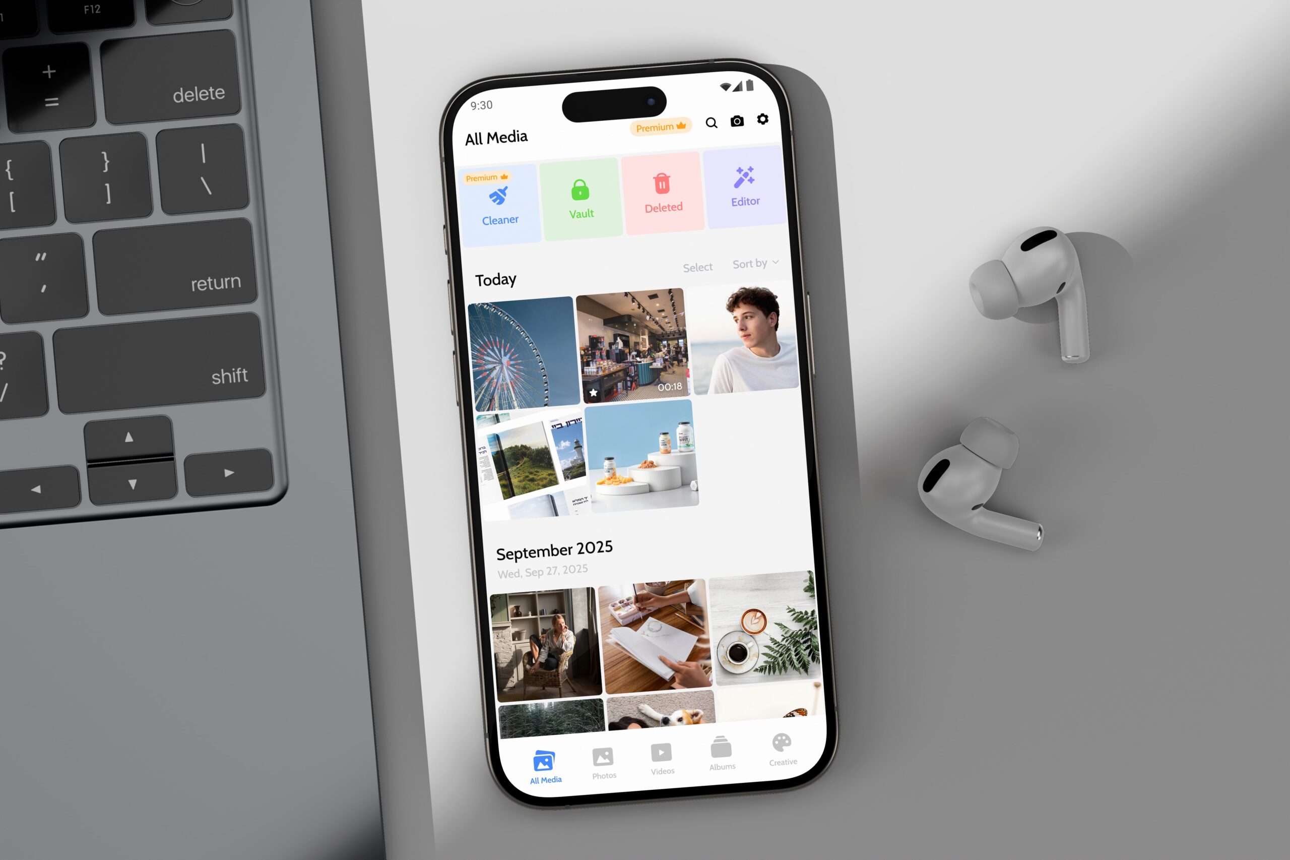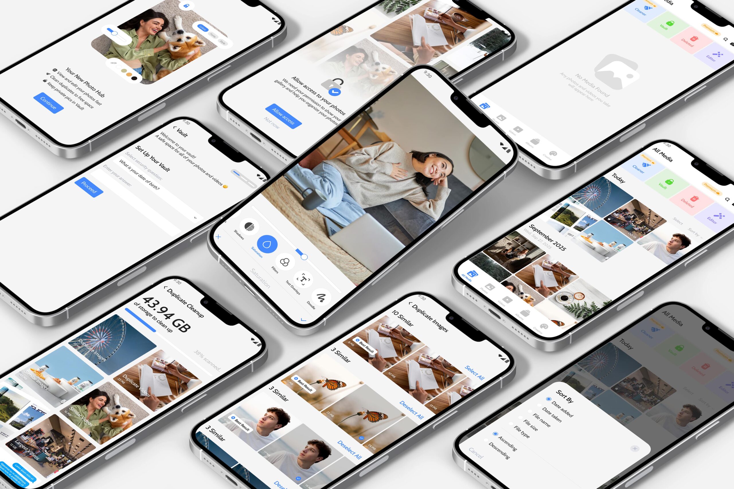 The goal was to elevate the app with a more modern interface and a richer feature set, including a duplicate cleaner, expanded photo editing tools, onboarding and permission screens, a recently deleted category, as well as support for dark mode and landscape orientation – creating a more intuitive and versatile user experience overall.