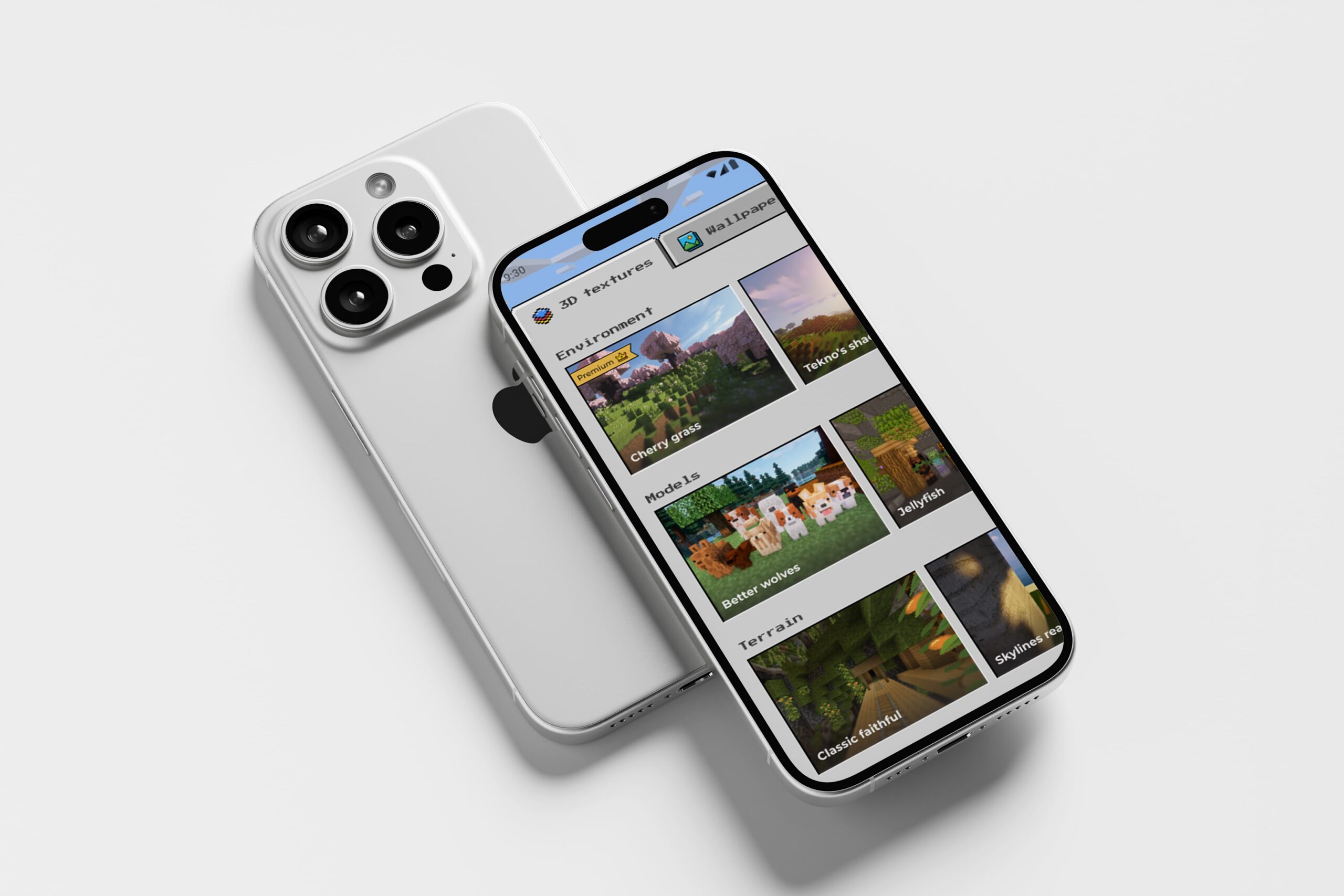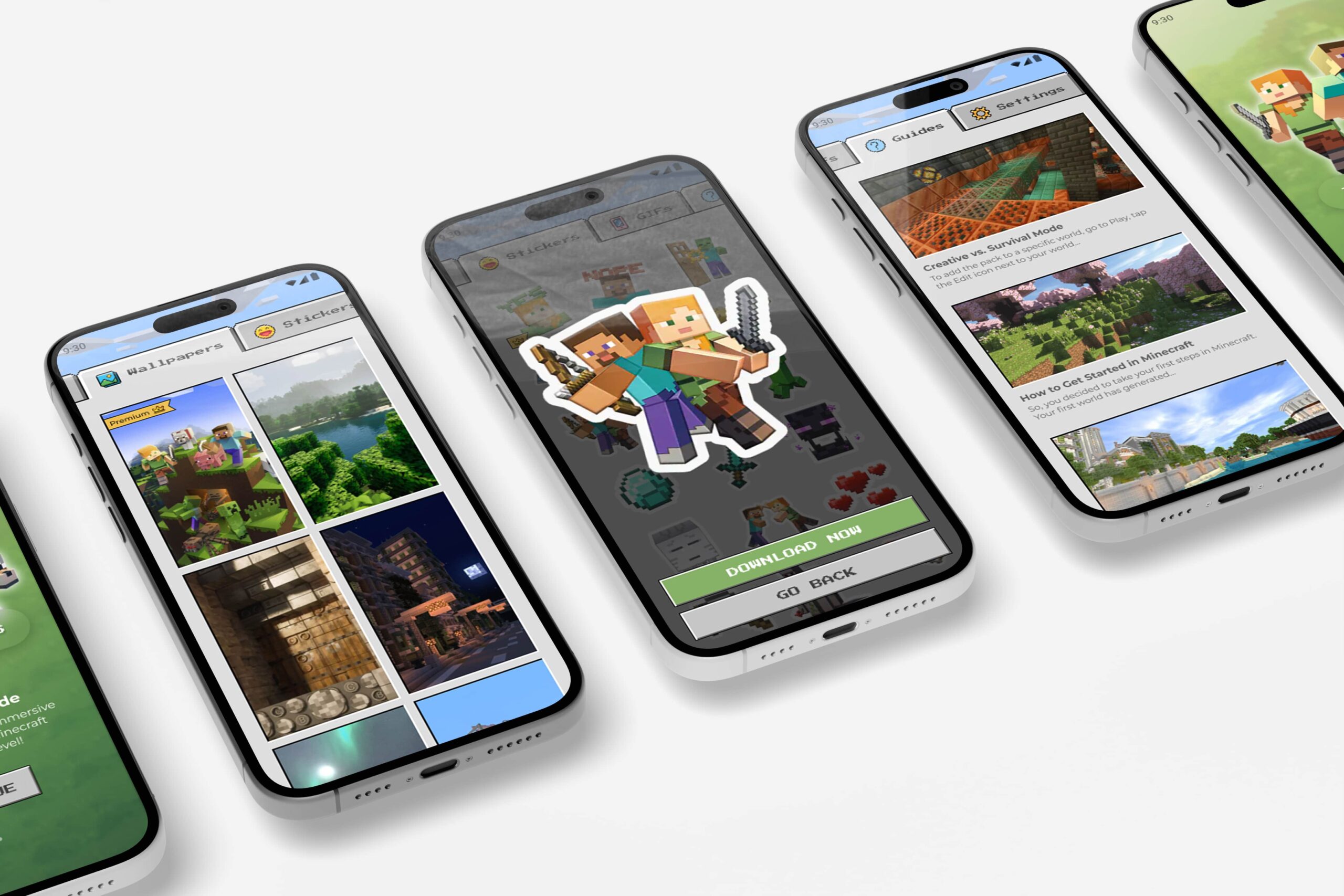 The goal of the redesign was to create a more playful, game-inspired look that instantly feels familiar to Minecraft players, while also expanding the app’s offering beyond 3D textures and guides. As part of the update, new content types such as wallpapers, stickers, and GIFs were added to create a richer and more engaging experience.